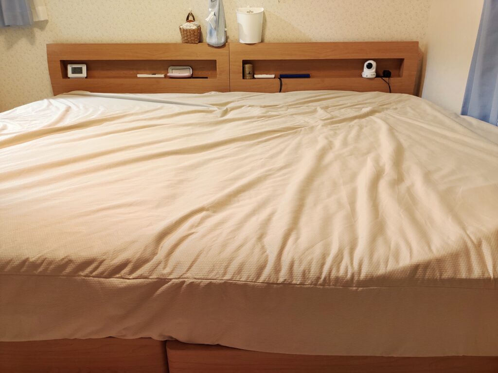 以前の我が家は、セミダブルのベッドそれぞれに、セミダブルサイズの敷パットを敷いて寝ていました。